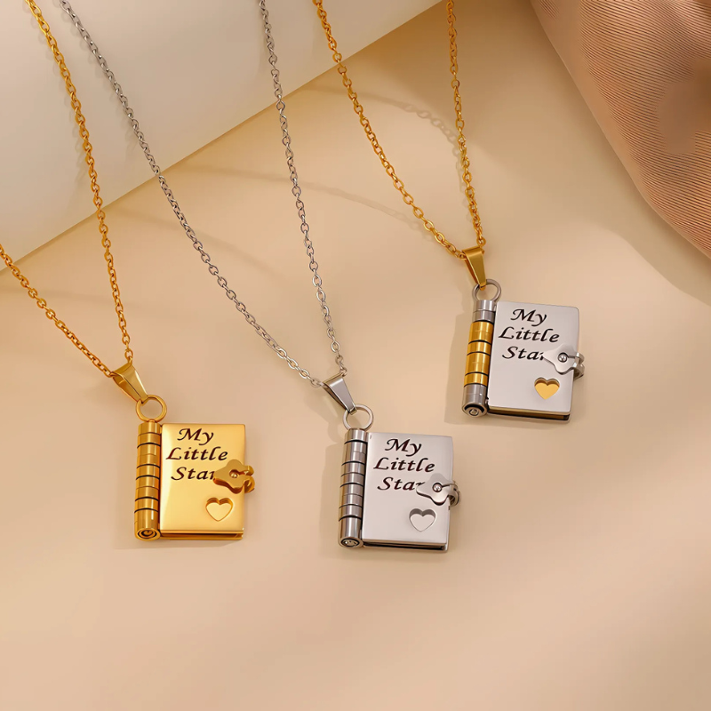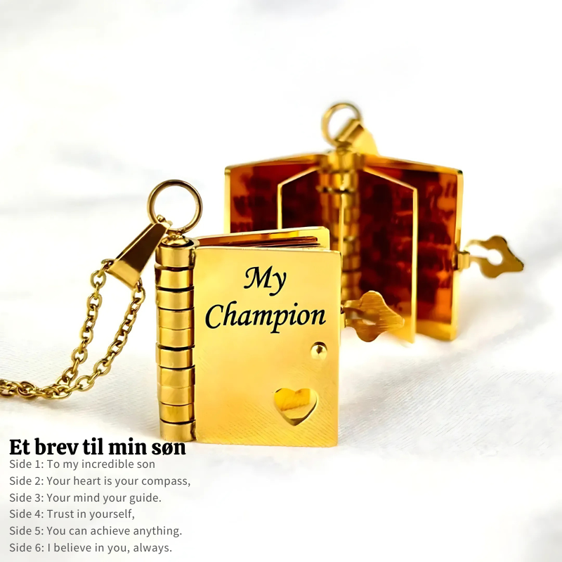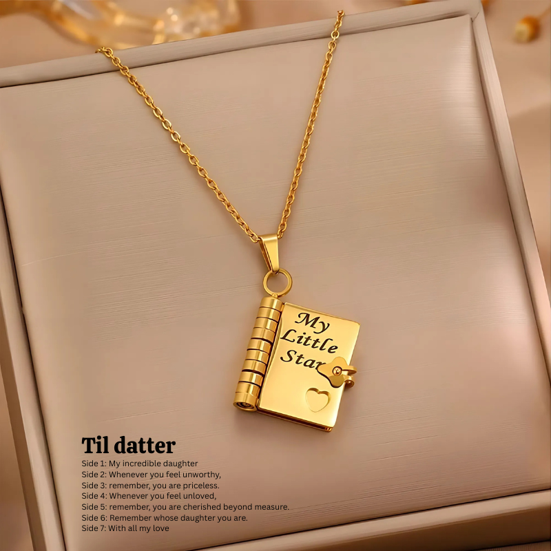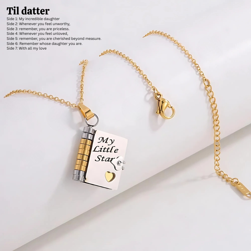Et symbol på dyb kærlighed – HeartScript™ bærer et inderligt budskab i sit bogformede vedhæng, som hver dag minder hende om, hvor meget hun betyder for dig. Det er ikke bare smykker – det er dine ord indgraveret i metal.