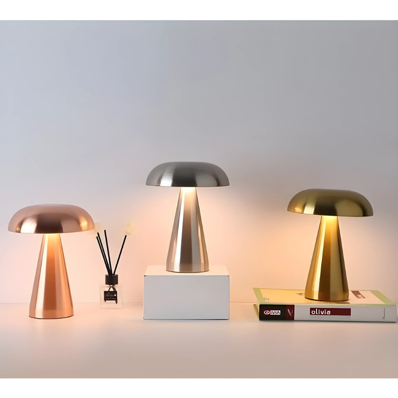 Stilfuldt, diskret design – En tidløs champignon-silhuet med metallisk finish passer til både moderne og klassiske interiører. NordGlow™ tilfører en rolig, elegant tilstedeværelse uden at stjæle opmærksomheden.