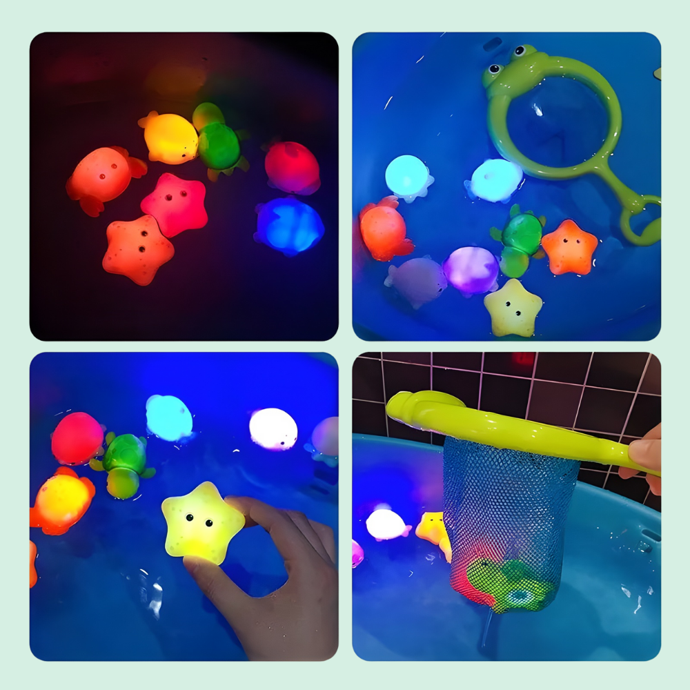 Vandaktiveret lys – Lysene tænder automatisk, når legetøjet rører vandet—ingen knapper, ingen opsætning. Dæmp badeværelseslyset for en ekstra magisk “badfest”-effekt.