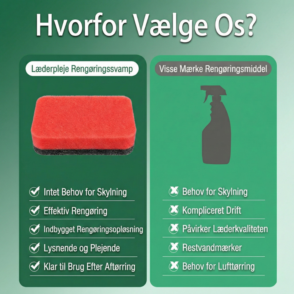 Skånsom til flere læderoverflader – Virker på almindelige lædervarer—tasker, sko, jakker og bilinteriør—så du ikke behøver forskellige rengøringsmidler. Én svamp dækker den daglige pleje af flere ting.