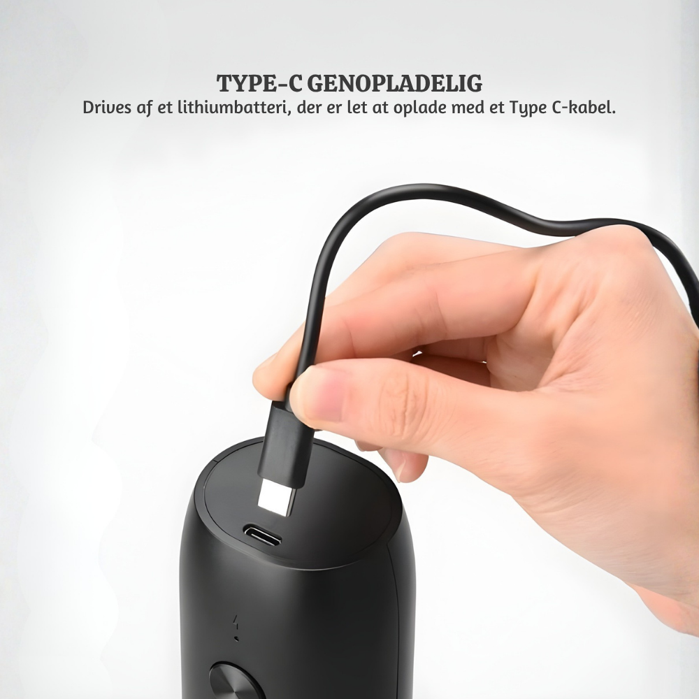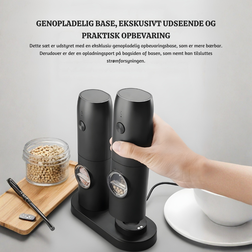 Jeg elsker, at den kan oplades med USB-C – ingen batterier længere. Den dobbelte base ser elegant ud og holder altid kværnene klar.