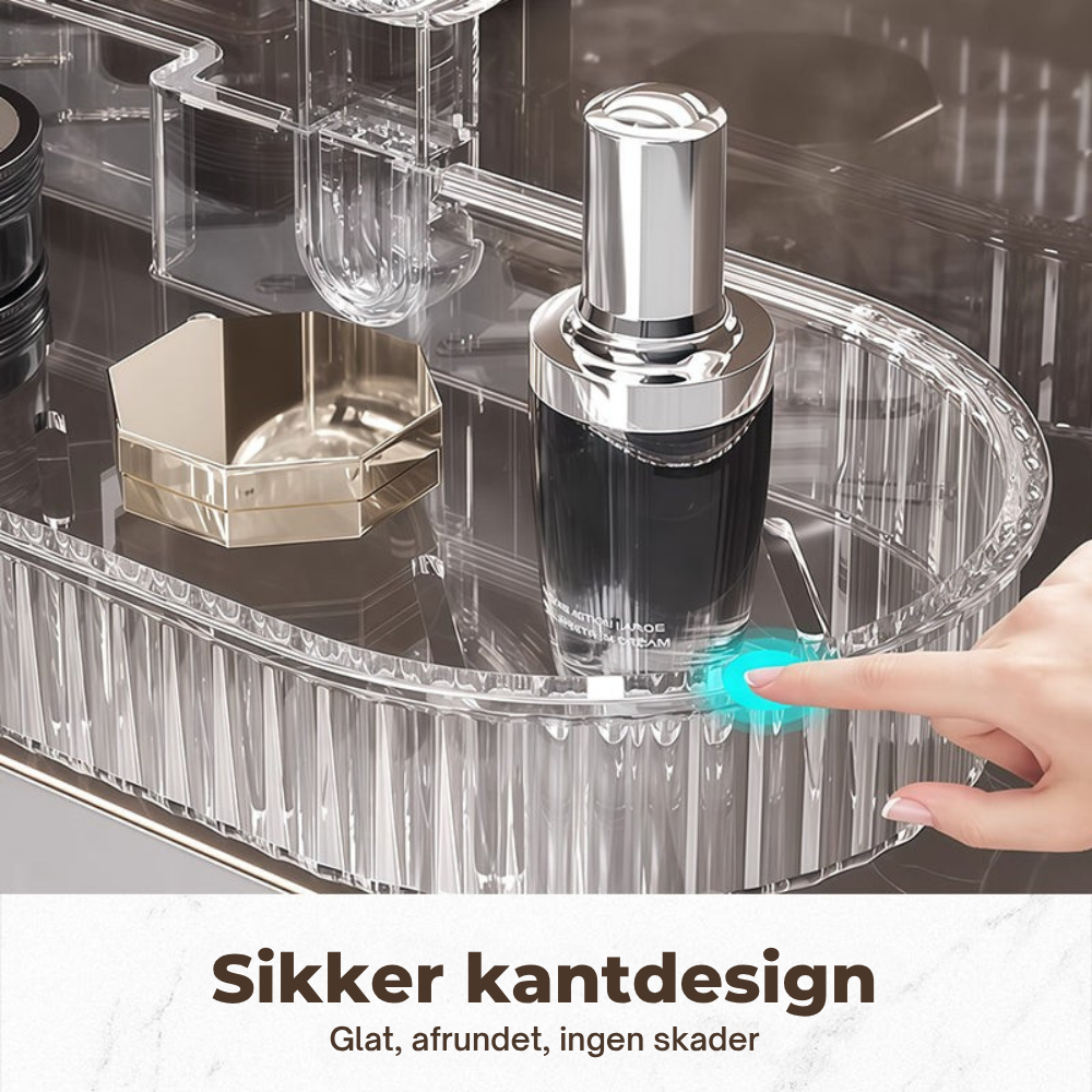Stærk Bæreevne og Stabilitet – FlexiDrain™ er fremstillet med tykkere og bredere paneler, der sikkert bærer fuldstørrelsesflasker. De høje kantlister holder alt på plads, så intet glider ned i vasken midt i din rutine.
