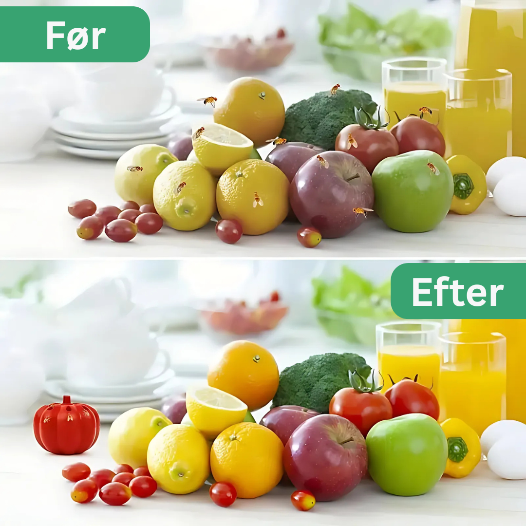 Med FlyFree™, som tusindvis af husholdninger over hele landet har tillid til, kan du endelig nyde et rent, friskt og skadedyrsfrit hjem uden at være afhængig af skadelige kemikalier. Det diskrete græskar-design tilføjer charme og giver samtidig en effektiv, giftfri beskyttelse mod frugtfluer og myg.