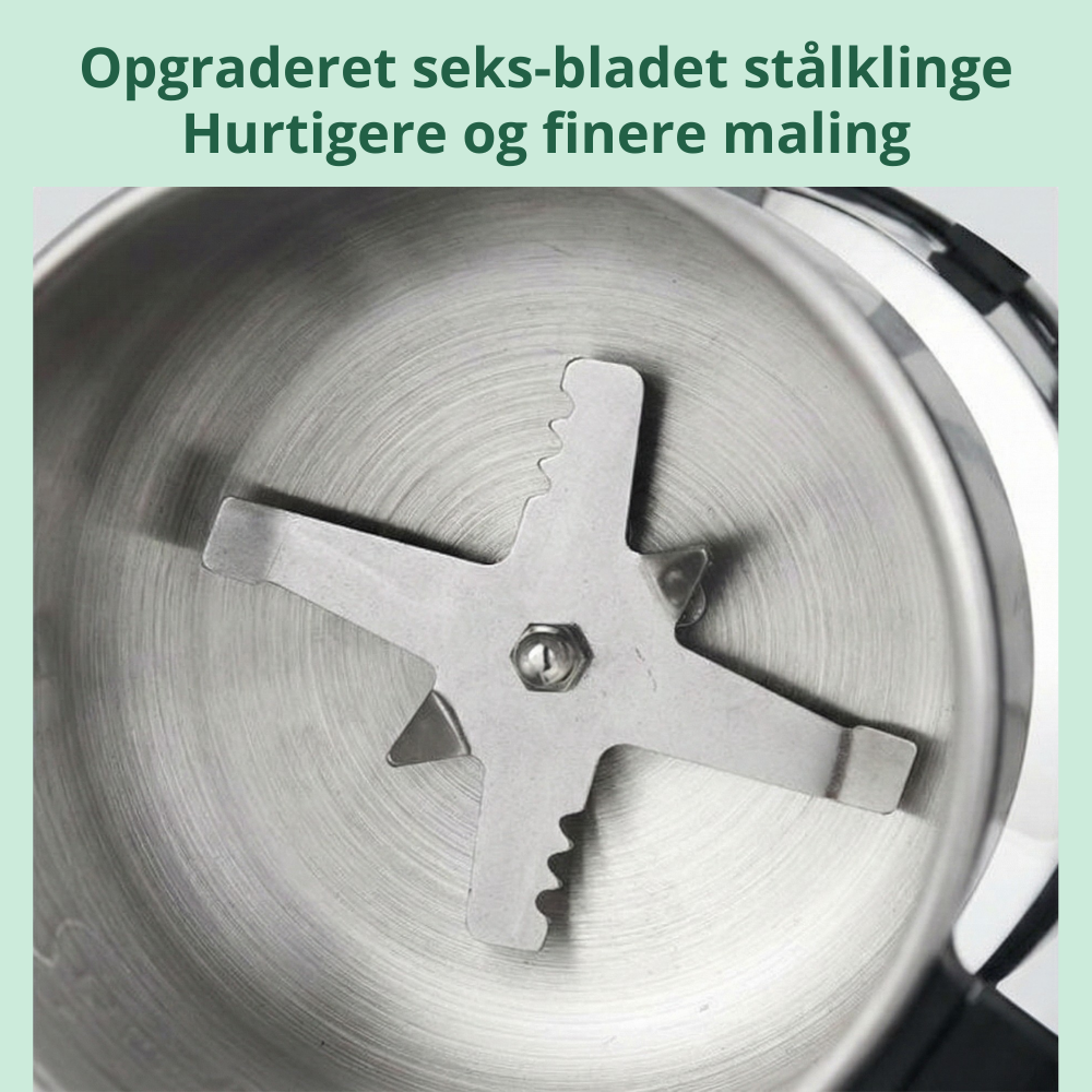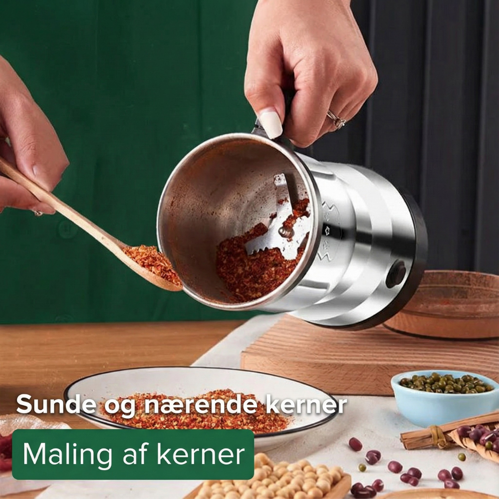 Få frisk og ensartet maling på få sekunder – perfekt til kaffebønner, krydderier, urter og daglig køkkenforberedelse.