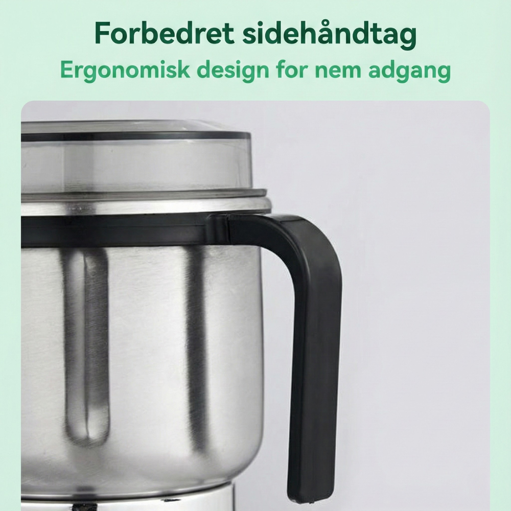 Kraftfuld motor – GrindPro™ er udstyret med en højtydende motor, der giver hurtig og effektiv kværning for en glattere konsistens og bedre smagsfrigivelse. Du bruger mindre tid på forberedelse og får ensartede resultater hver gang.