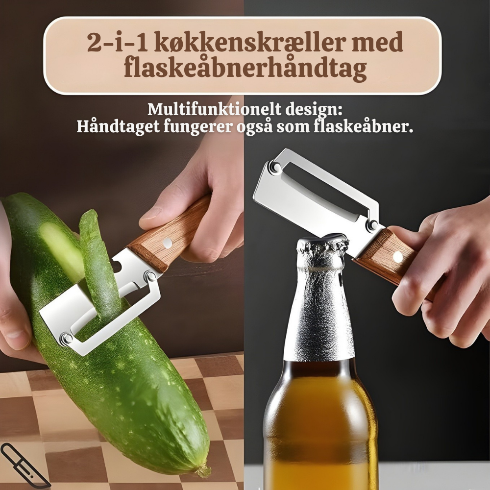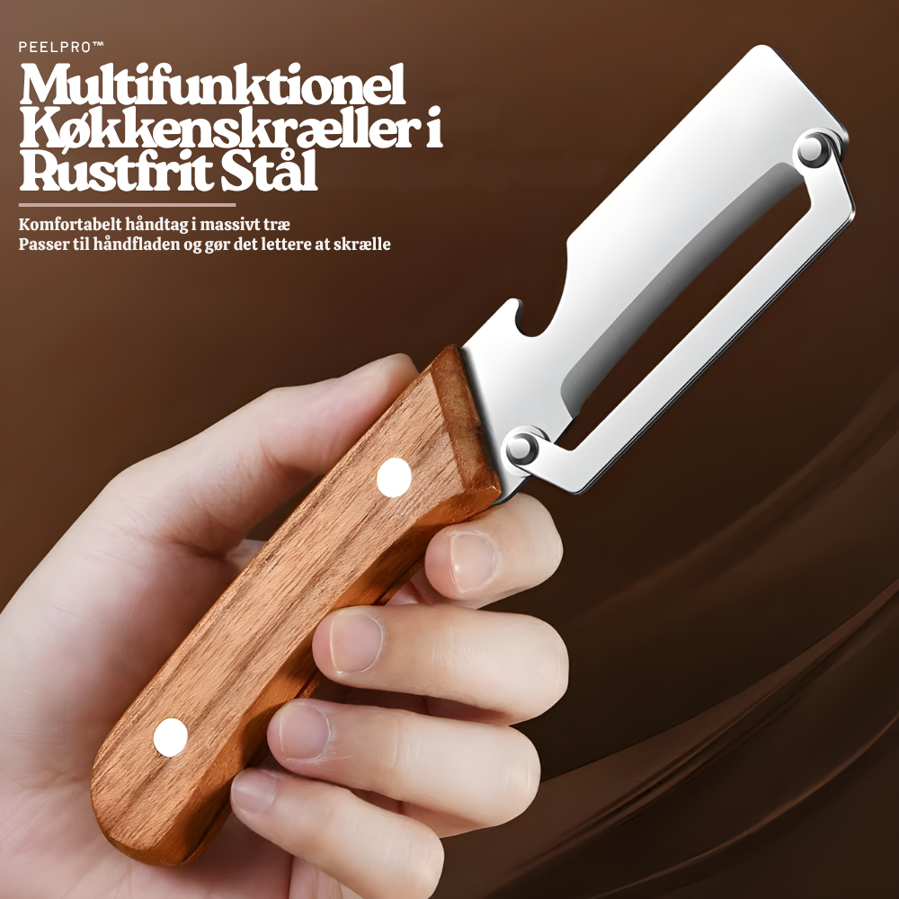 PeelPro™ føles professionel – skarp, afbalanceret og nem at styre. Træhåndtaget giver et eksklusivt præg og gør madlavning til en oplevelse som en kok.