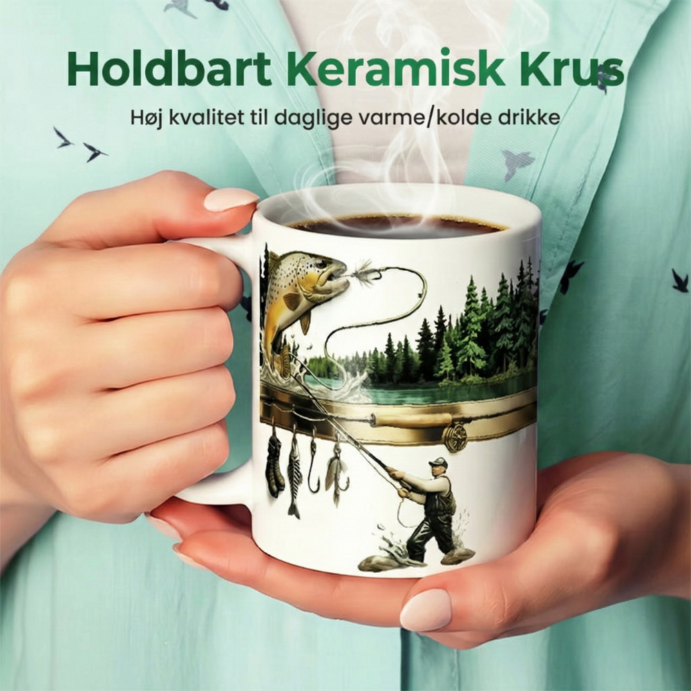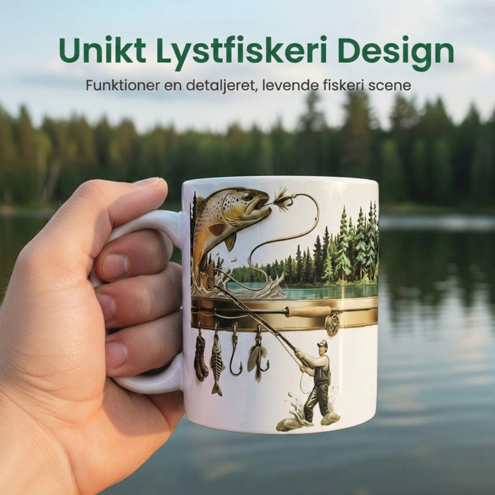 Levende fiskemotiv – Viser en detaljeret fiskescene, der straks vækker nostalgi og weekendstemning. Det er et design, folk lægger mærke til – så du får komplimenter, hver gang den står på skrivebordet eller bordet.
