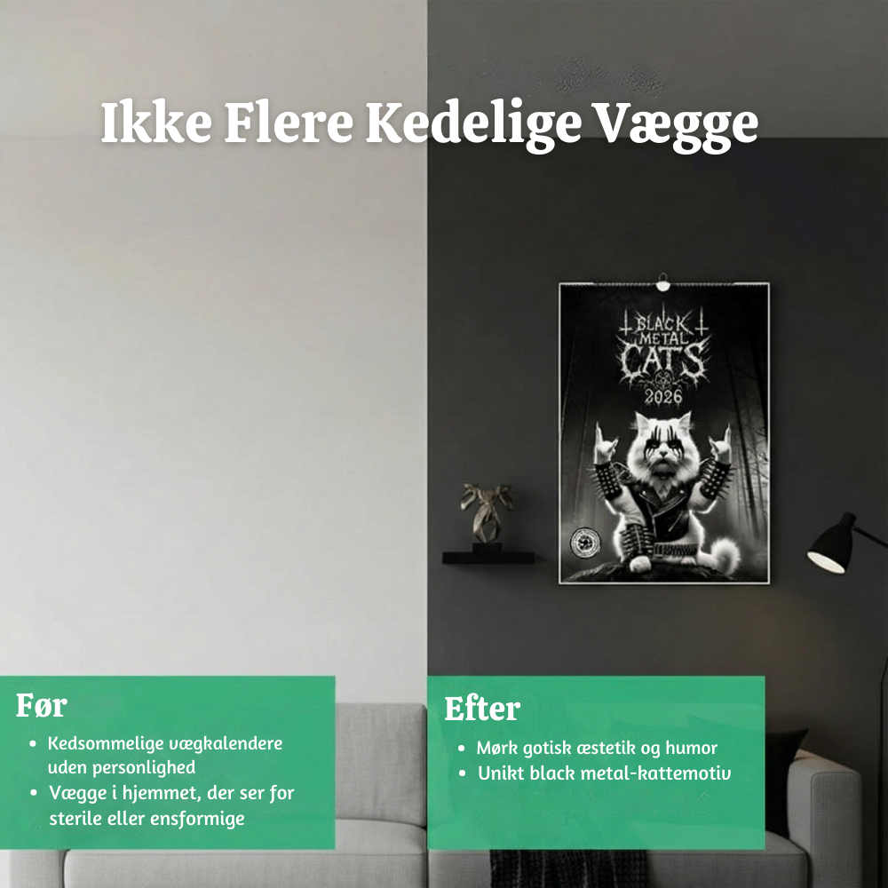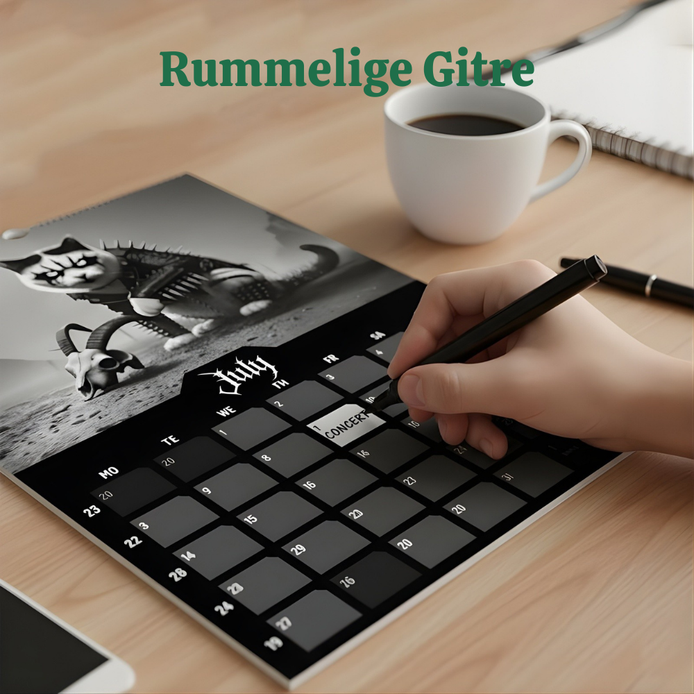 Unikt tema – Denne kalender kombinerer black metal-attitude med kattecharm, så din væg straks skiller sig ud fra generiske designs. Det er den slags dekoration, folk lægger mærke til, griner af og taler om.