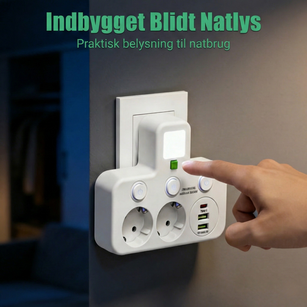 Indbygget blidt natlys – Indeholder et blødt natlys, der guider dig i mørket uden at oplyse rummet med skarp blænding. Perfekt til soveværelser og gange, så du kan sætte stik i sikkert uden at forstyrre søvnen.