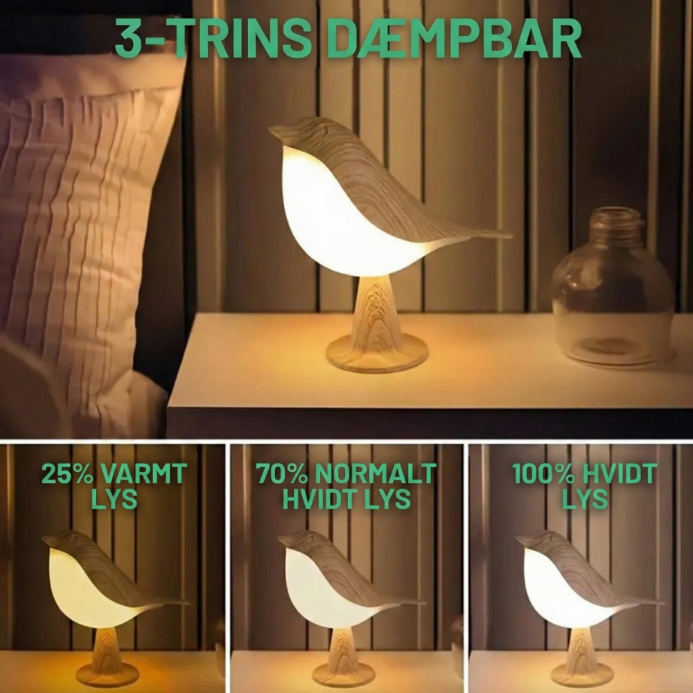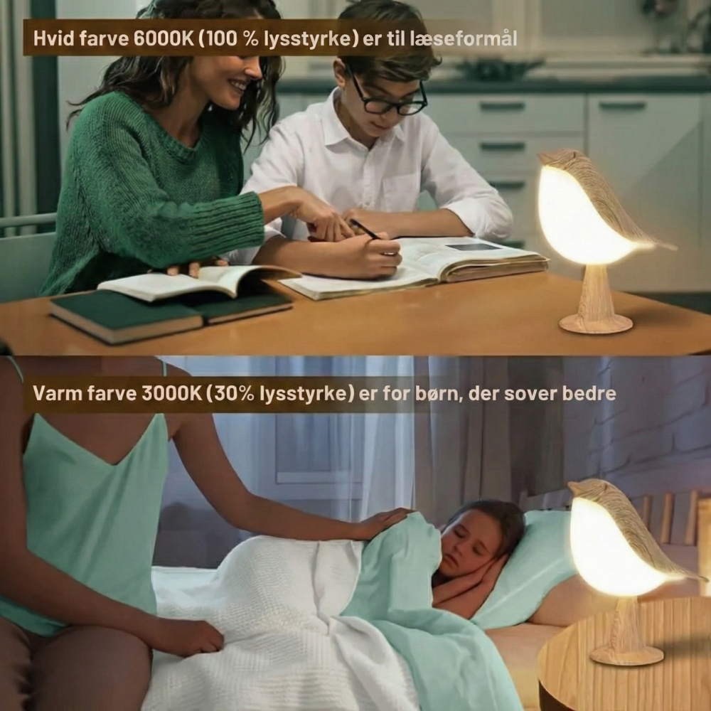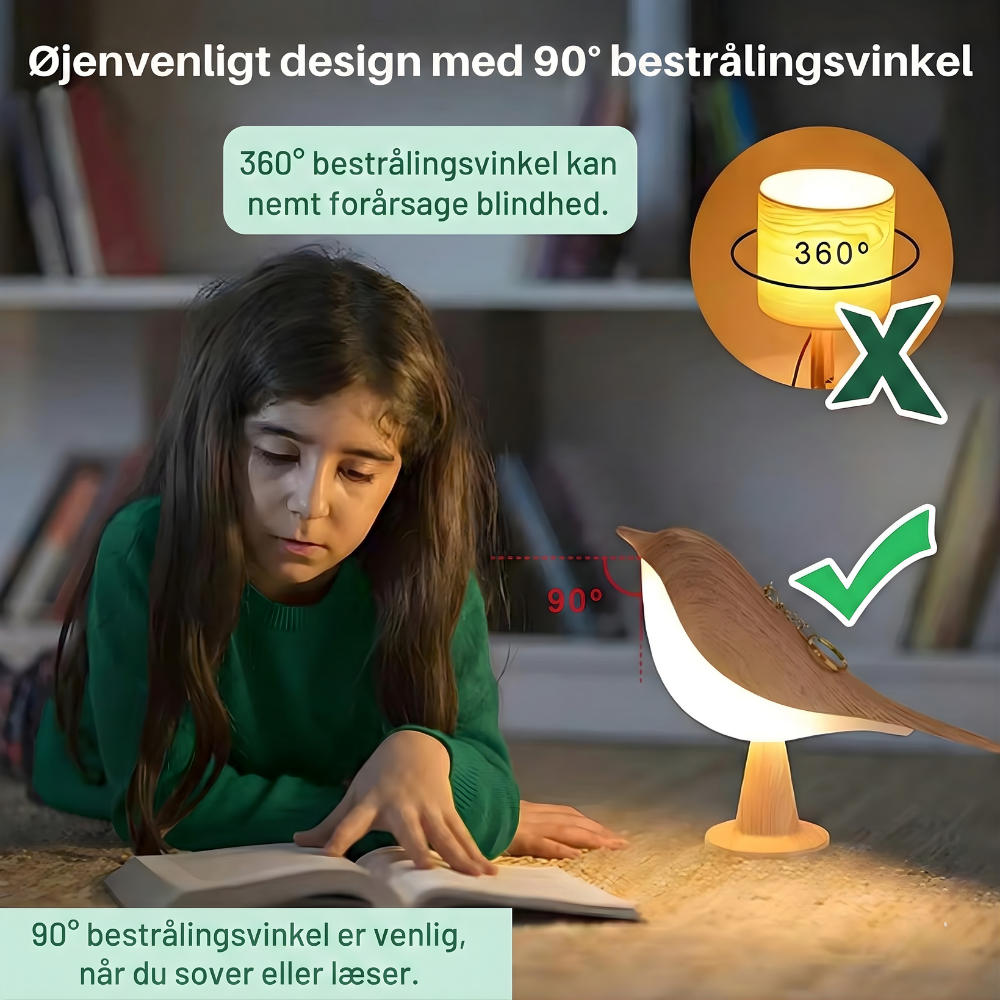 Designet som en yndefuld fugl på en trælook-base bringer ZenGlow™ naturinspireret charme og beroligende lys ind i din aftenrutine. Elsket i 30.000+ hjem leverer den flimmerfrit LED-lys med nem touch-betjening—så dine øjne forbliver komfortable fra sengetidslæsning til sene tjek. Fra børneværelser og kollegier til køkkener og telte er det en lille lampe, der gør en overraskende stor forskel.