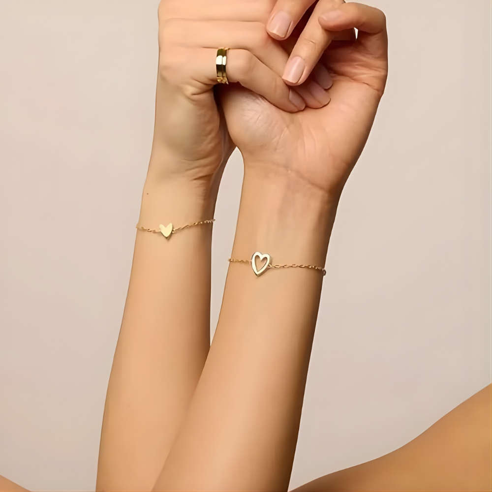 Dette elegante par armbånd – ét med fyldt hjerte, ét med åbent hjerte – symboliserer to mennesker, der er forskellige, men perfekt forbundne. Med Loveline™ får du et minimalistisk, tidløst design, der føles særligt uden at være prangende. Elsket af kærestepar, mødre og døtre, søskende og bedste venner er det blevet en favoritgave for dem, der ønsker noget meningsfuldt i stedet for “bare endnu en gave.”