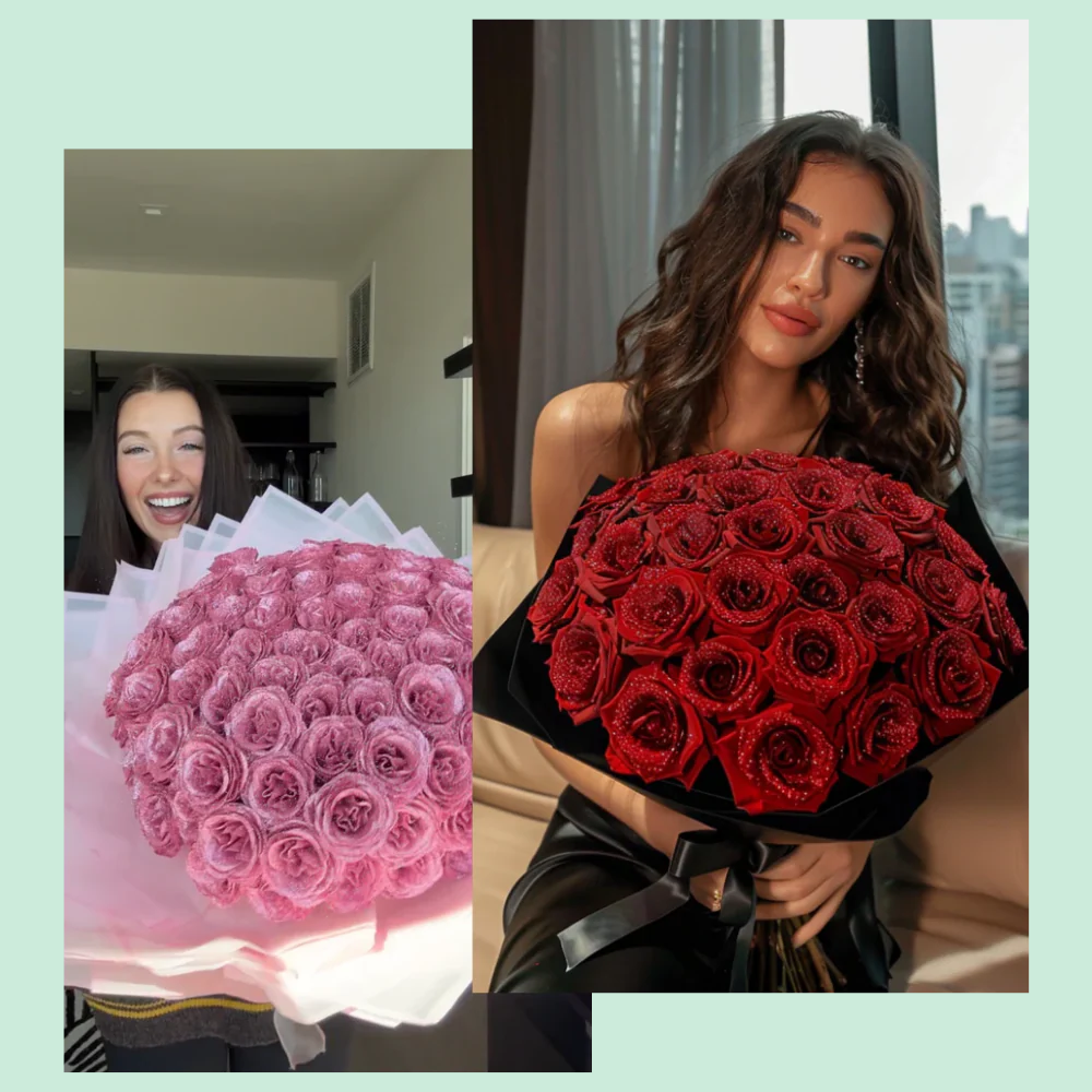 En dristig, romantisk buket designet til at se fantastisk ud dag efter dag—ingen visnen, ingen udskiftning. EternaBloom™ er omhyggeligt fremstillet og afsluttet med et lysfangende shimmer, der giver et øjeblikkeligt luksuriøst “wow”-øjeblik. Det er den type gave, der gør enhver valentinsdag, årsdag eller “bare fordi” helt uforglemmelig.