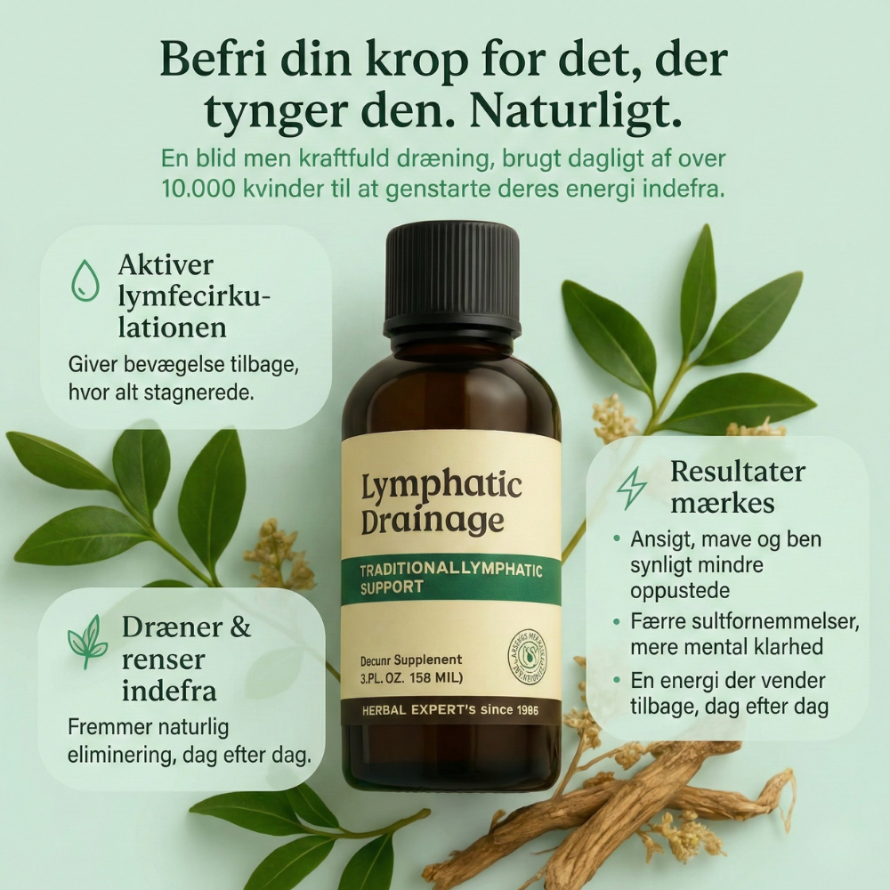 Støtte til lymfesystemet – Hjælper med at stimulere lymfecirkulationen dér, hvor kroppen kan føles “fastlåst” og træg. Den daglige støtte kan give en friskere, mindre tung fornemmelse fra morgenstunden.