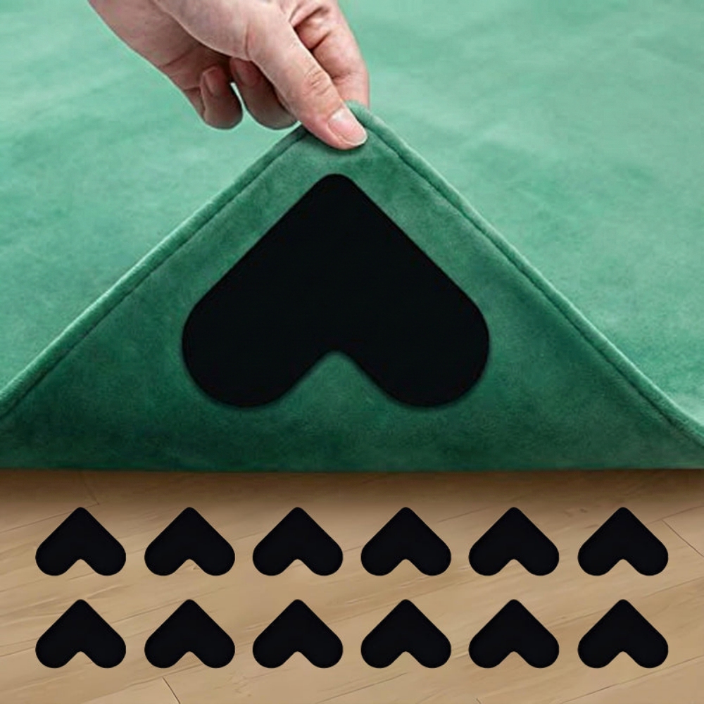 At holde tæpper flade burde ikke kræve tape, søm eller konstant justering. GripHeart™ er designet til at fastgøre tæppehjørner effektivt på almindelige gulve som træ, fliser og laminat. Det hjerteformede design griber fat i hjørnerne, hvor løft typisk opstår, og hjælper med at reducere risikoen for at glide eller snuble i hjemmet. Det er en favorit i travle hjem med børn, kæledyr og gæster, fordi det er vaskbart, genanvendeligt og ikke efterlader klæbrige rester.