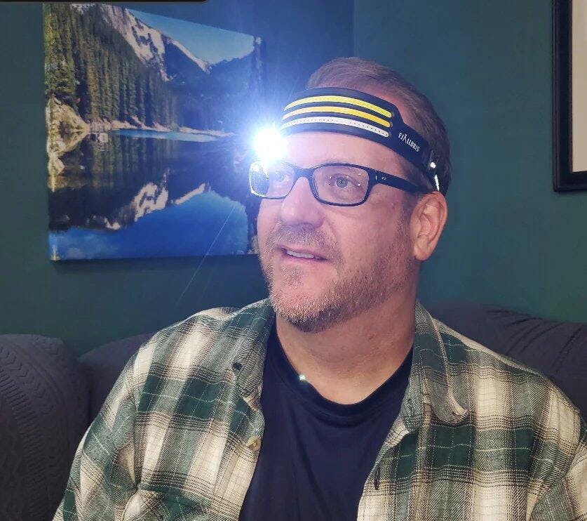 Denne pandelampe er så let, at jeg glemmer, jeg har den på. Selv efter flere timers brug føles den som et pandebånd, ikke tung.