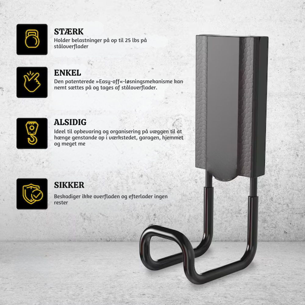 Jeg elsker, at MagnaPro™ ikke efterlader mærker, når det fjernes. Mine ståldøre og paneler forbliver pæne, mens alt mit udstyr hænger sikkert.