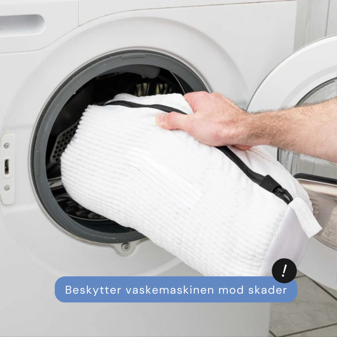 Tidsbesparende og problemfri – Du skal blot lægge dine sko i posen, lukke lynlåsen og smide den i vaskemaskinen. Ingen skrubben, ingen stress – bare friske, rene sko.