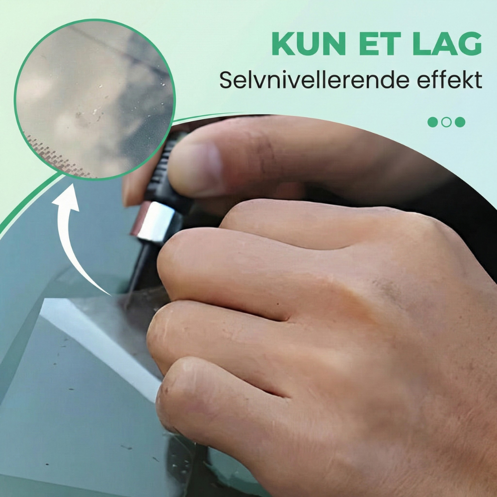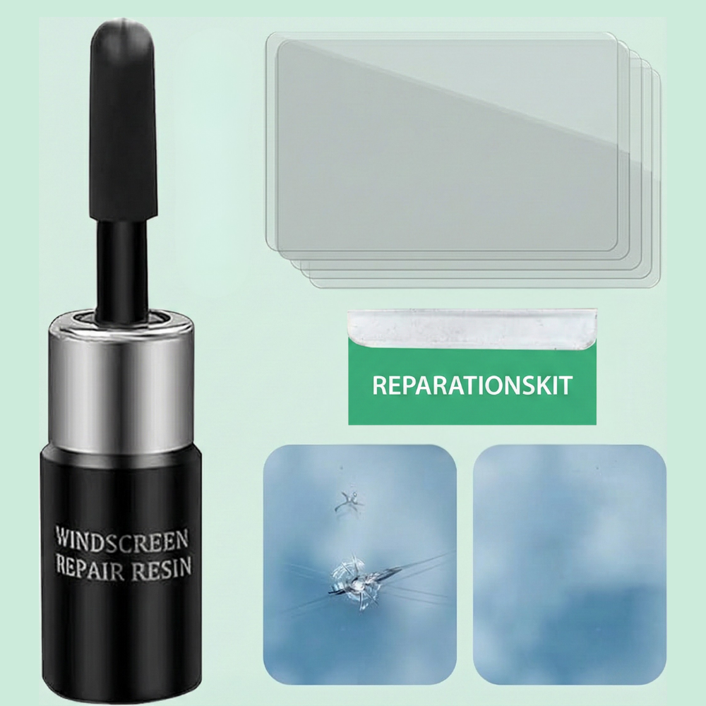 Hurtig resin-fyldning – Reparationsresinen flyder ind i det beskadigede område for at udfylde sprækker og reducere det synlige “spindelvævs”-look. Når den er hærdet, ser overfladen glattere ud, så stenslaget bemærkes langt mindre.