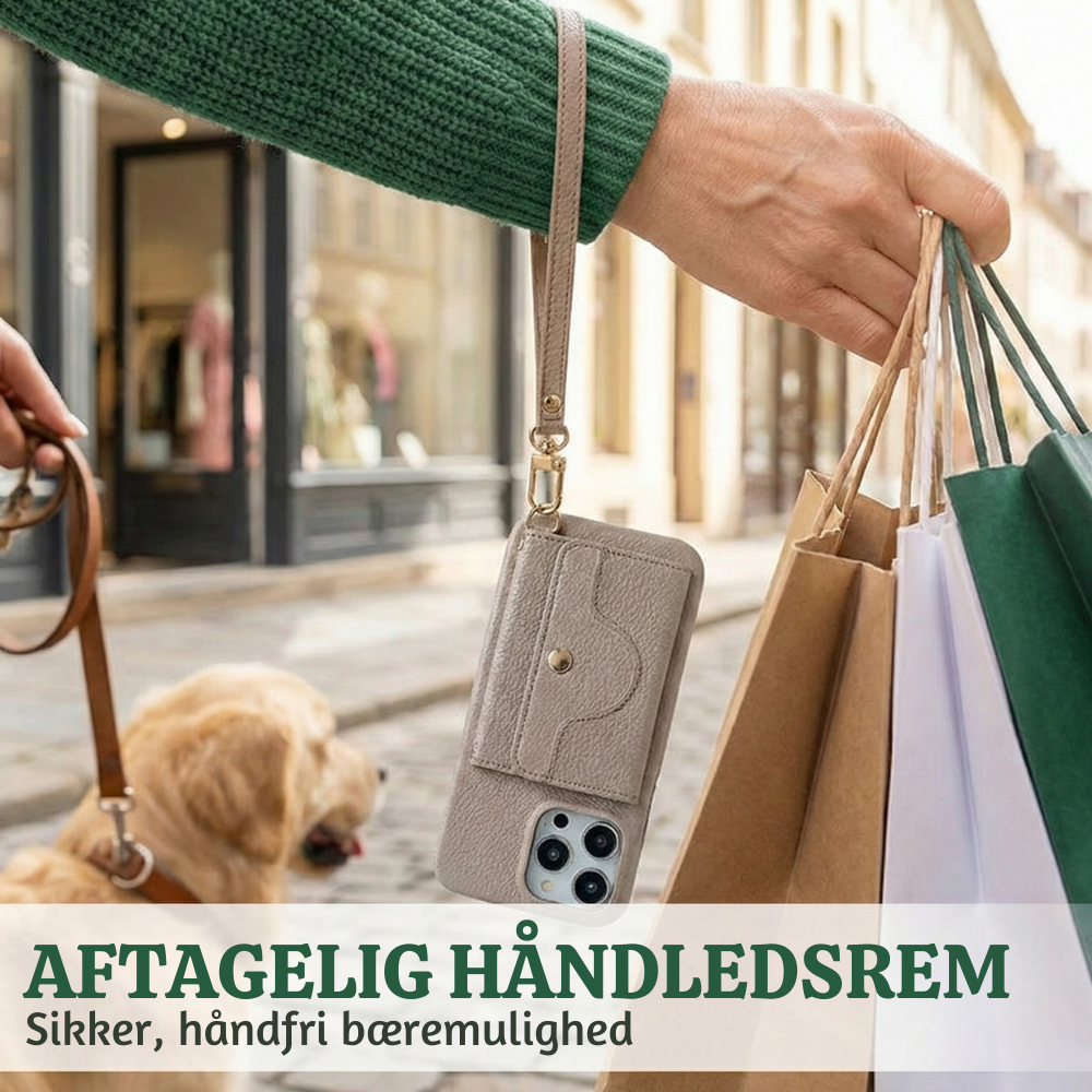 Sikker aftagelig håndledsrem – En matchende PU-læderrem giver sikker og nem transport, når du har hænderne fulde. Mindsker risikoen for at tabe telefonen og giver et mere stabilt greb på farten.