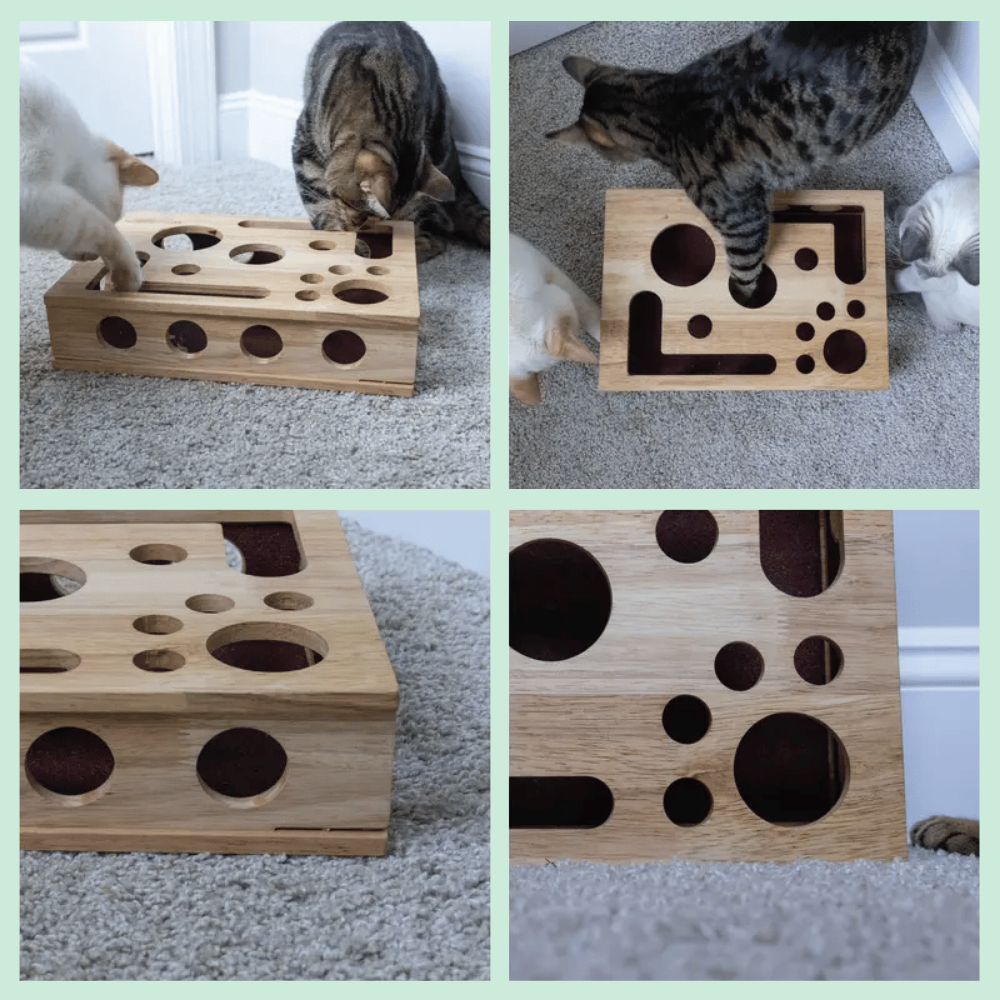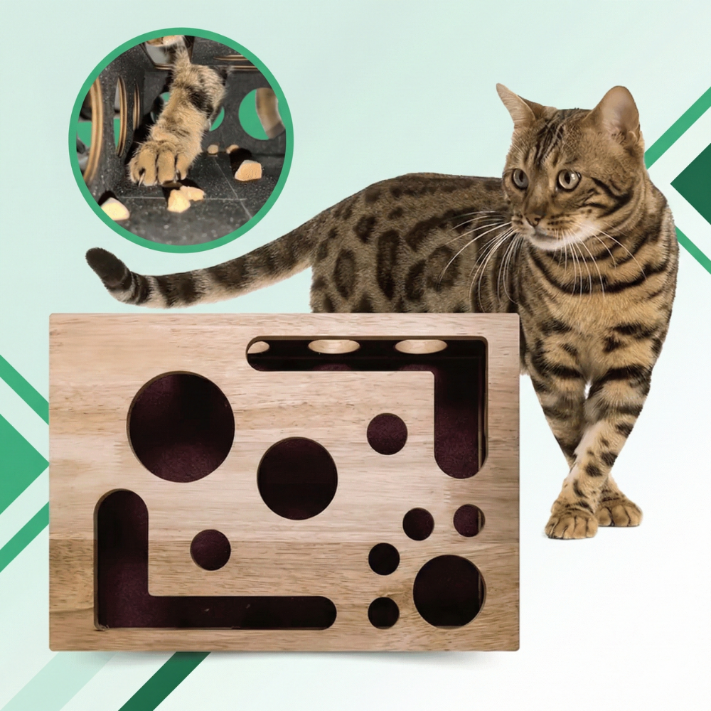 Mental stimulering gennem puslespil – Forvandler godbidder eller foder til en sjov udfordring, der holder nysgerrige katte beskæftiget og fokuseret. Hjælper med at reducere kedsomhedsadfærd som miaven, uro og uønsket kradsen.