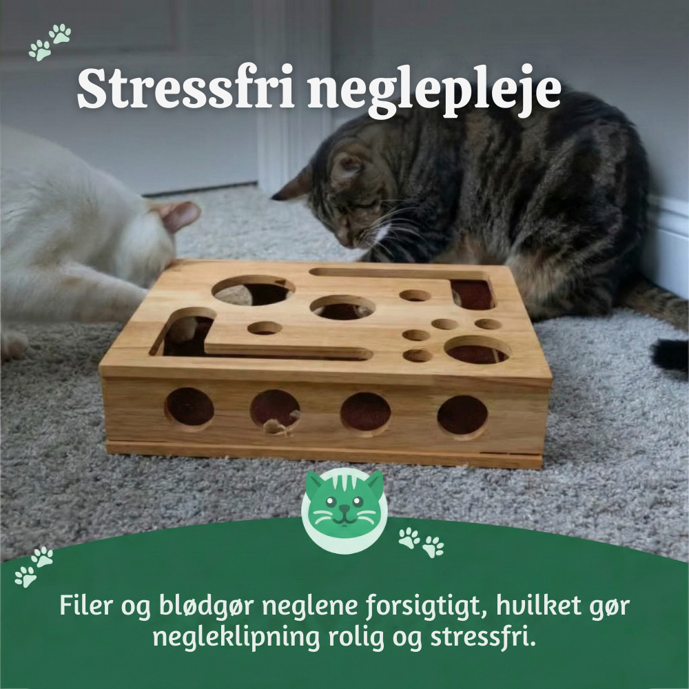 Forvandl negleklip til leg—så din kat filer naturligt, mens den forbliver rolig og engageret.