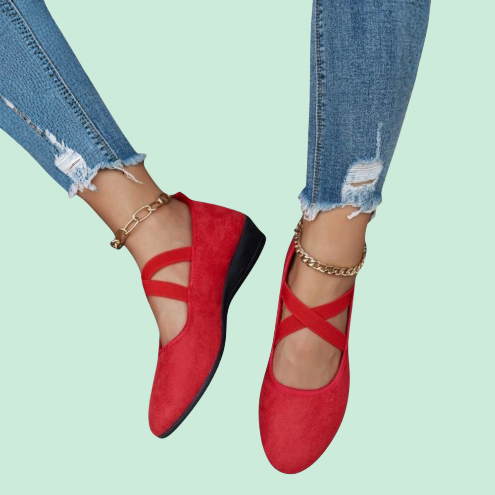 Aflastning hele dagen – Bruger en blød, støttende fodseng, der er designet til at lette trykket på hæle og forfod, så hvert skridt føles lettere. Selv efter travle arbejdsdage eller lange gåture føles dine fødder ikke “straffet”, som de kan gøre i mange pæne flade sko.