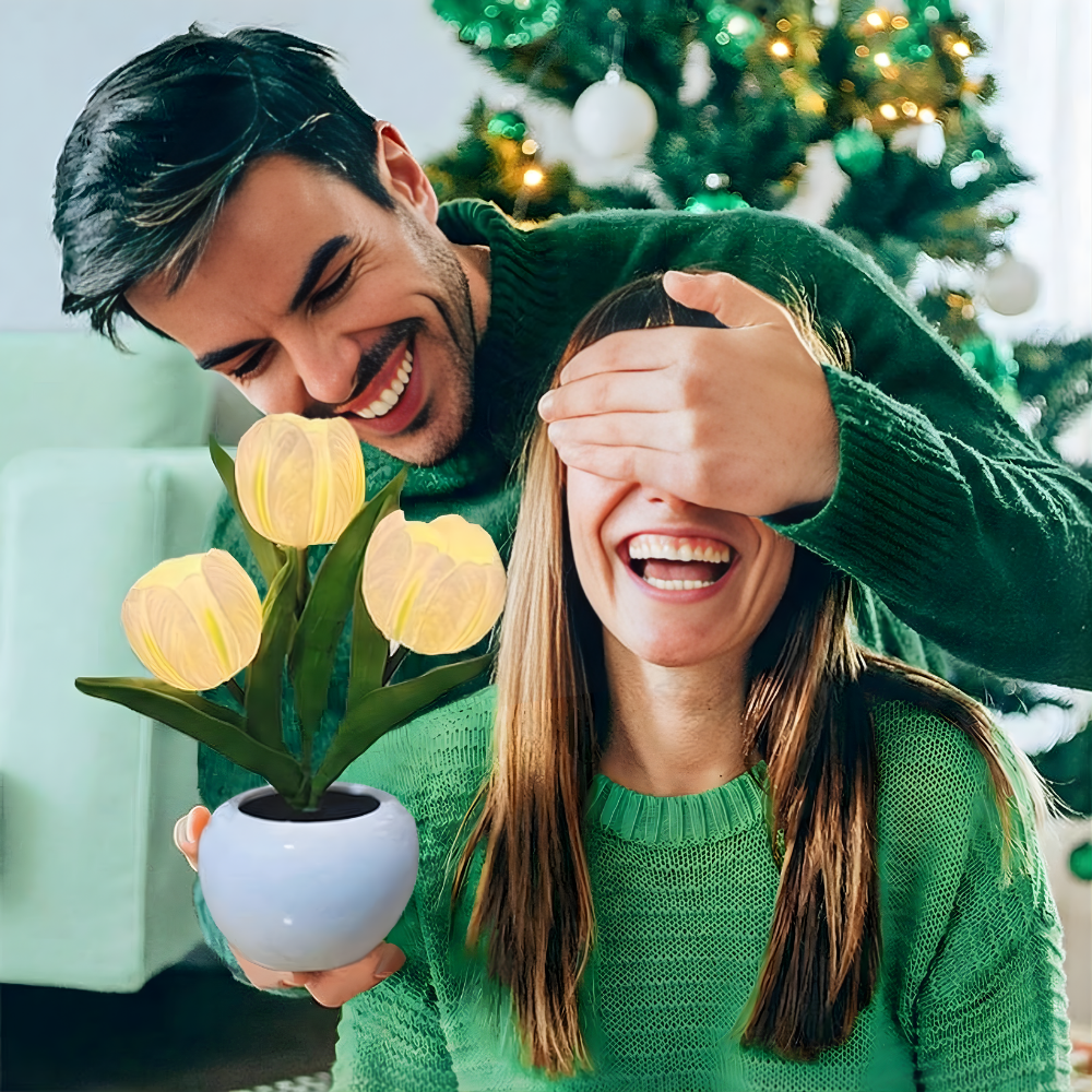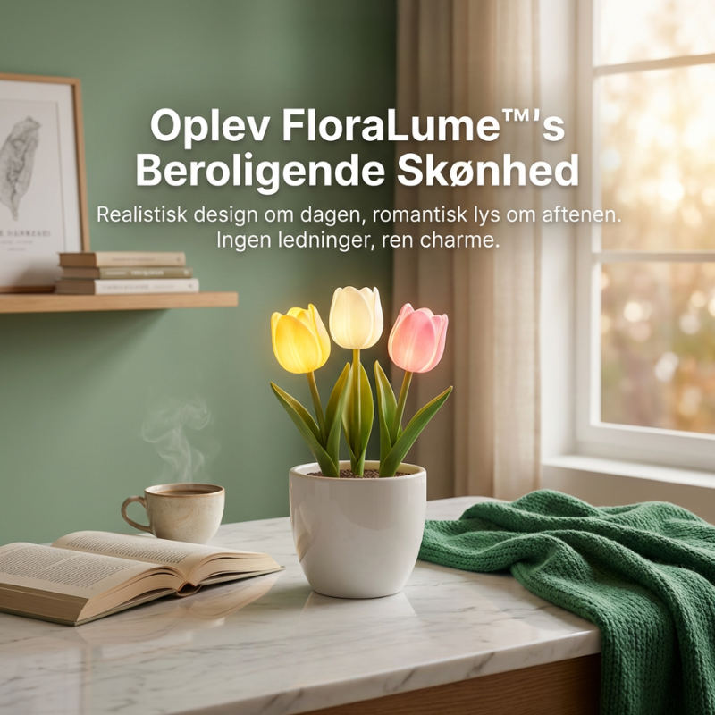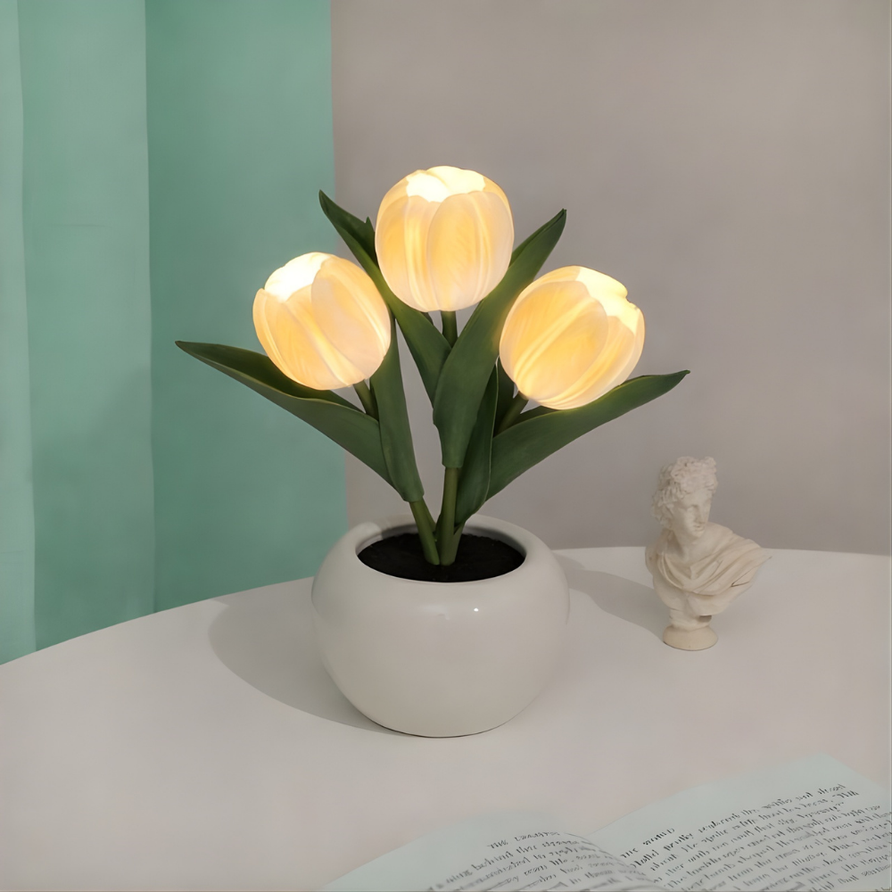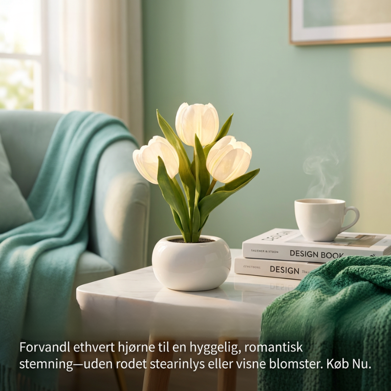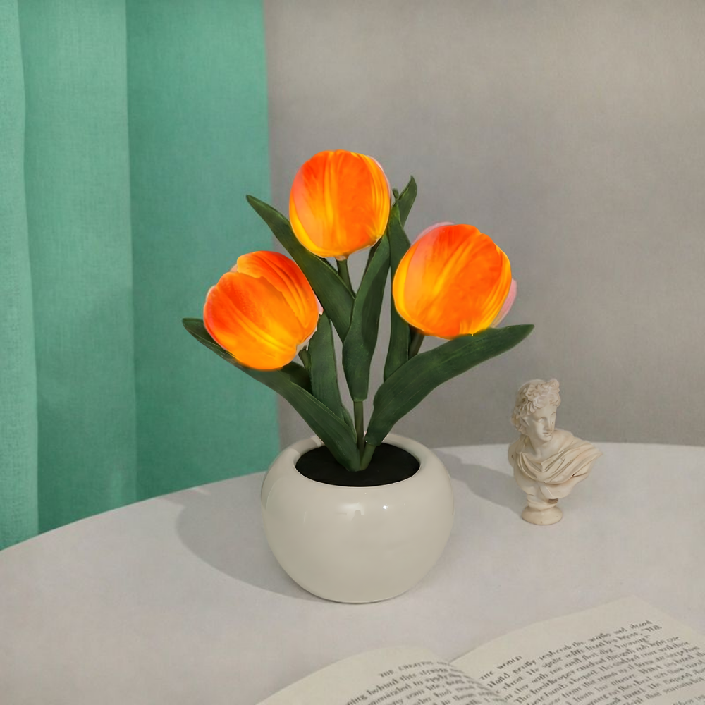 En pottet LED-tulipan-natlampe, der ser smukt realistisk ud om dagen og føles beroligende om aftenen. FloraLume™ tilfører øjeblikkelig charme til soveværelser, stuer, skriveborde, bryllupper og hyggelige kroge. Elsket af 10.000+ kunder er det en nem måde at løfte dit rum med blødt, varmt lys. Med langtidsholdbare LED-lys og materialer i høj kvalitet (PU-tulipaner + keramisk potte) er det en dekoration, du kan nyde sæson efter sæson.