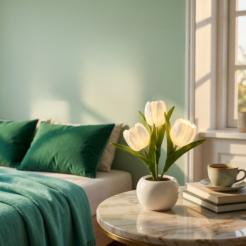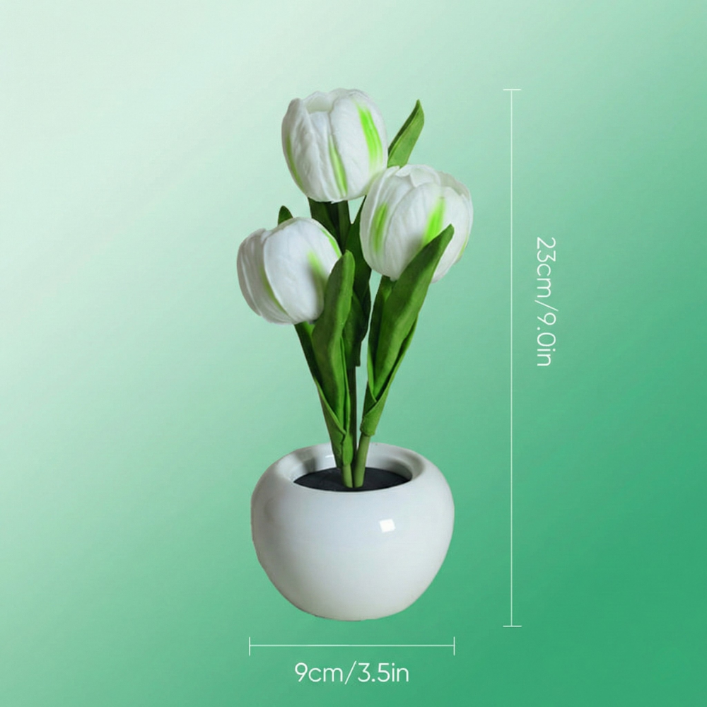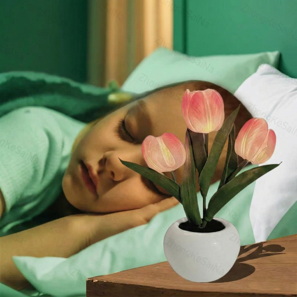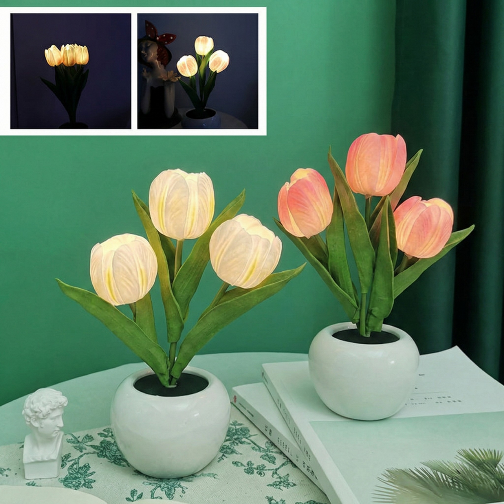 En pottet LED-tulipan-natlampe, der ser smukt realistisk ud om dagen og føles beroligende om aftenen. FloraLume™ tilfører øjeblikkelig charme til soveværelser, stuer, skriveborde, bryllupper og hyggelige kroge. Elsket af 10.000+ kunder er det en nem måde at løfte dit rum med blødt, varmt lys. Med langtidsholdbare LED-lys og materialer i høj kvalitet (PU-tulipaner + keramisk potte) er det en dekoration, du kan nyde sæson efter sæson.