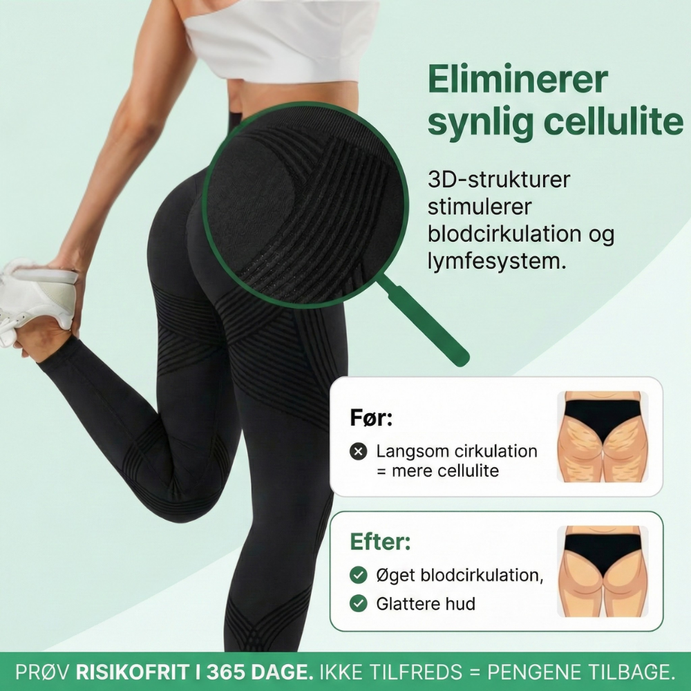3D-skulpterende tekstur – Målrettede 3D-linjer hjælper med at skabe et skulpteret look, der flatterer baller, lår og talje med det samme. Teksturen giver en “holdt” fornemmelse de rigtige steder uden at begrænse bevægelsen.