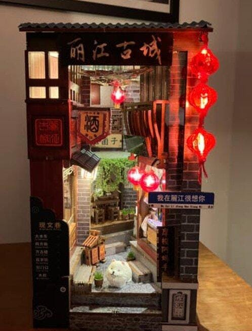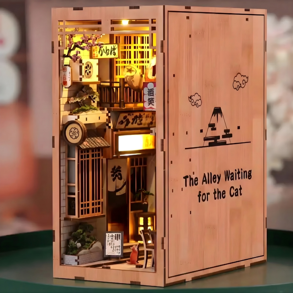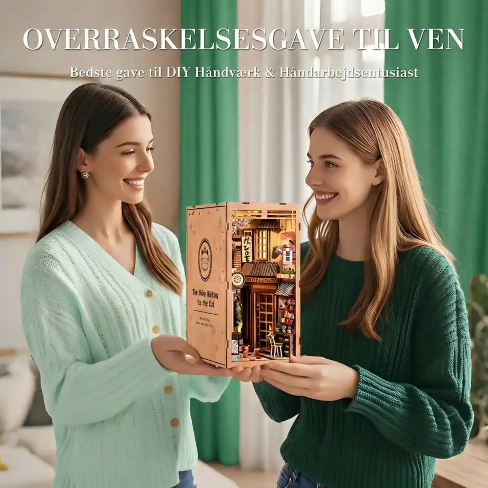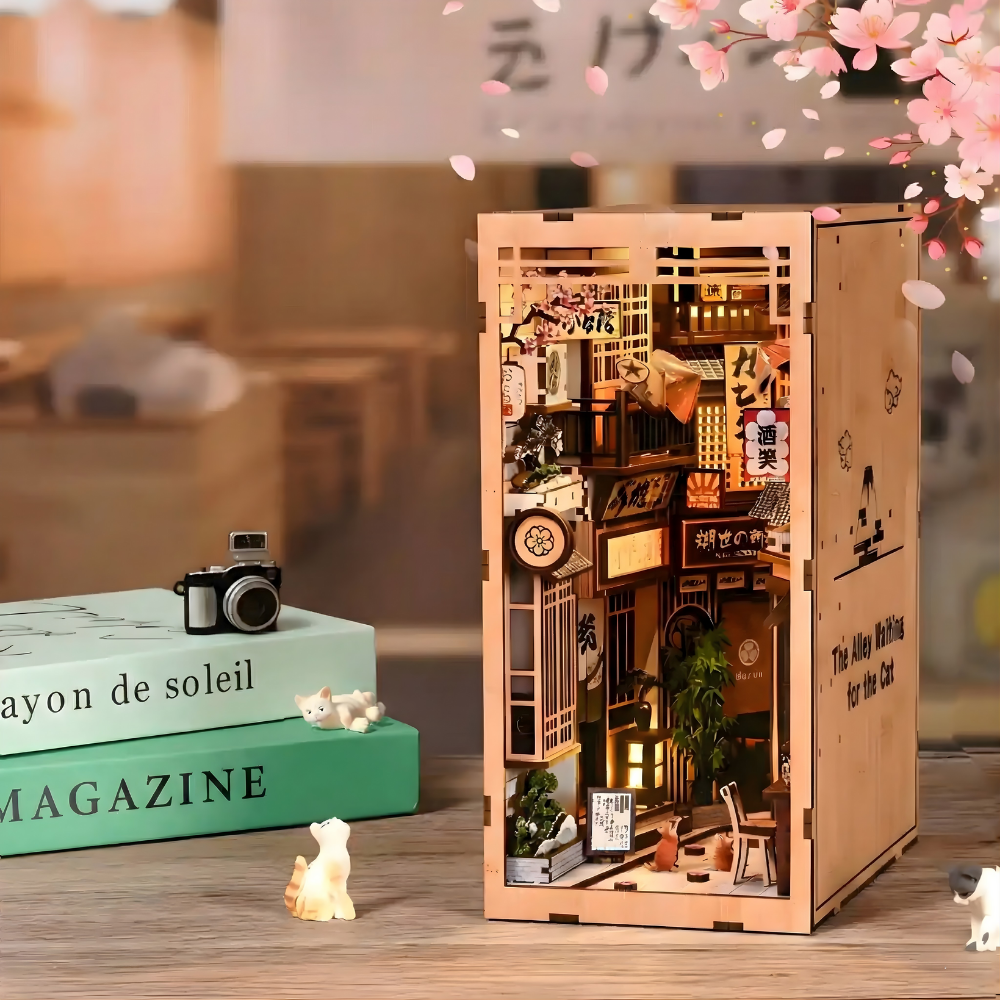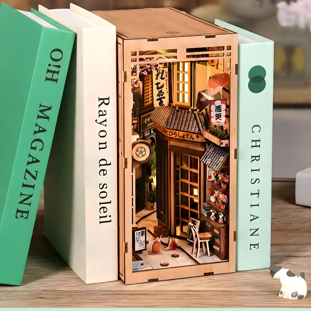 Tidløs dekoration – Når det er færdigt, fungerer dette miniaturehus og book nook som en fantastisk tilføjelse til dit hjem. Det er ikke bare et håndværksprojekt; det er et unikt, charmerende dekorativt element, der transporterer dig til Kyotos rolige skønhed.