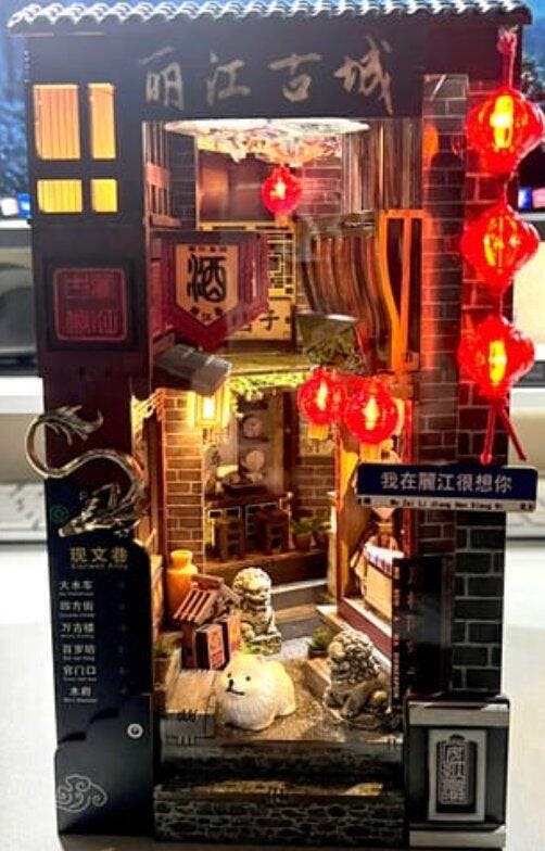 KyotoDawn™ DIY Miniature House og Book Nook Kit giver en sjælden mulighed for at skabe en detaljeret, rolig scene fra Kyotos berømte Gion-distrikt. Perfekt for både begyndere og erfarne byggere, indeholder dette kit alt, hvad du behøver for at genskabe en fantastisk miniaturemodel. Med over 7.500 tilfredse kunder er det den perfekte måde at slappe af, udnytte din kreativitet og forvandle din bogreol til et kunstværk.