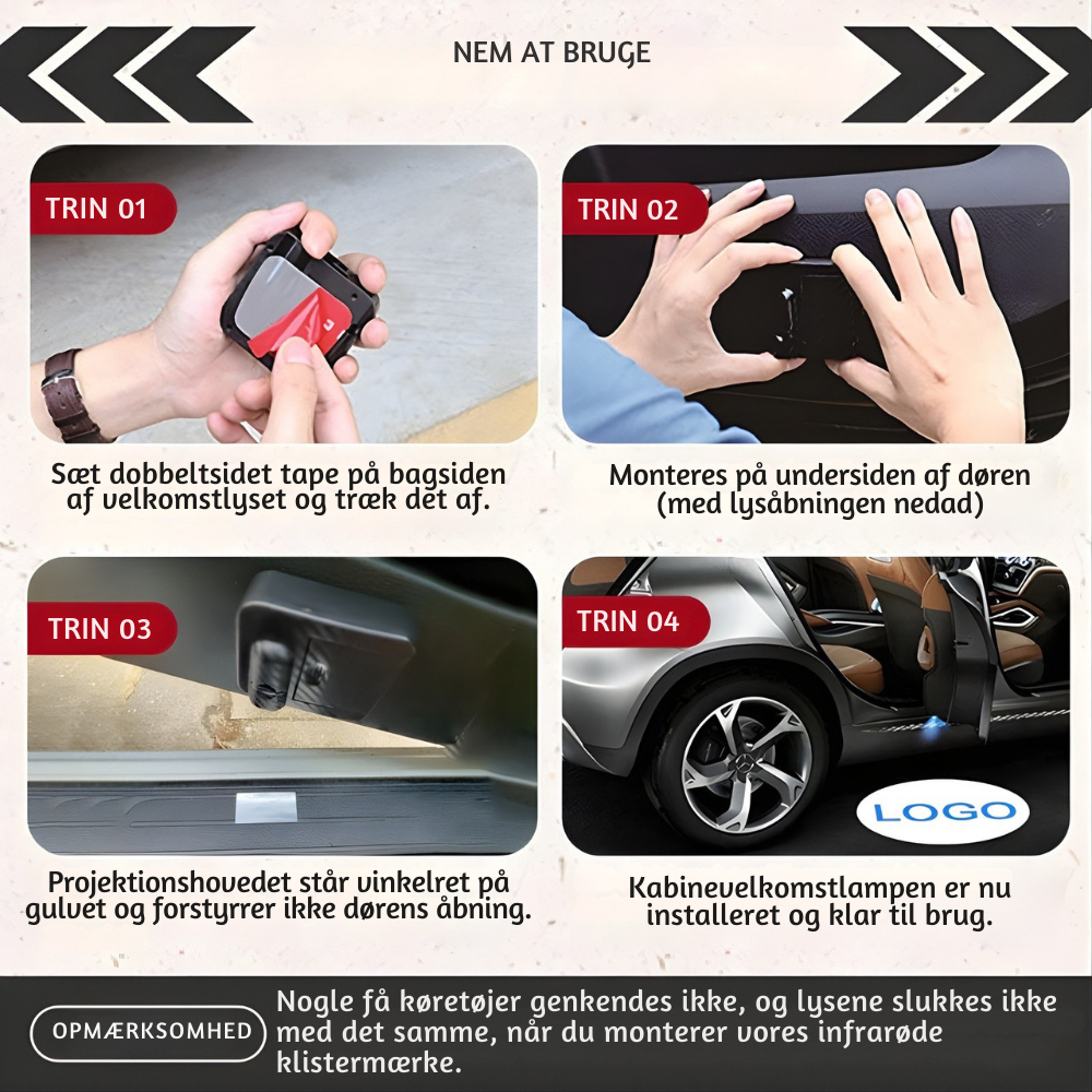 Projektionen er utroligt skarp og føles eksklusiv hver eneste gang. Klarheden får logoet til at se professionelt ud og giver bilen et mere luksuriøst udtryk.